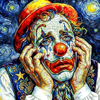 Peinture sur toile acrylique / Clown triste façon Van gogh