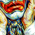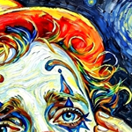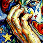 Peinture sur toile acrylique / Clown triste façon Van gogh